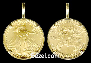 ![]() 14K Gold Pendant - The coin is fully protected in between 2 Bezels -Prongs will not come in contact with your coin -High Polished Bezel Pendant -Allow 10 days for delivery |