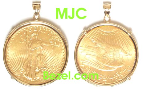 for all coins 14K Gold American Beauty Pendant - Protective (crystal) glass) on both sides of bezel - The coin is fully protected in between 2 Bezels -Prongs will not come in contact with your coin -Front of the pendant is high polished -American Beauty Pendant is available for most coins -Allow 10 days for delivery Gift Box Included |