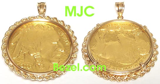 - Ancient Style 14K gold coin bezel - Custom made bezel encased with Protective Glass - Coin visible on both sides - No Prongs come in contact with your coin - No Screws involved providing a tighter fit Other sizes available