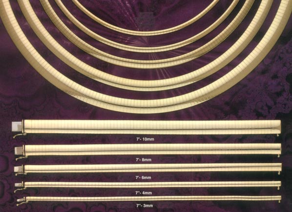 14 k Yellow and White gold Omega Necklaces and Bracelets